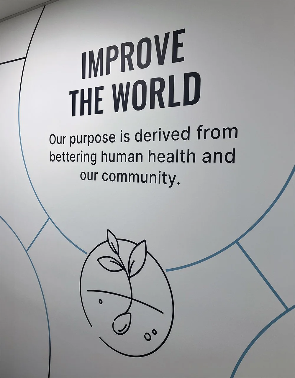 A-Alpha Bio moved into a new office space in 2023, and used some of the custom graphics and extended color palette I created to decorate the walls of the office. Photography provided by A-Alpha Bio.
