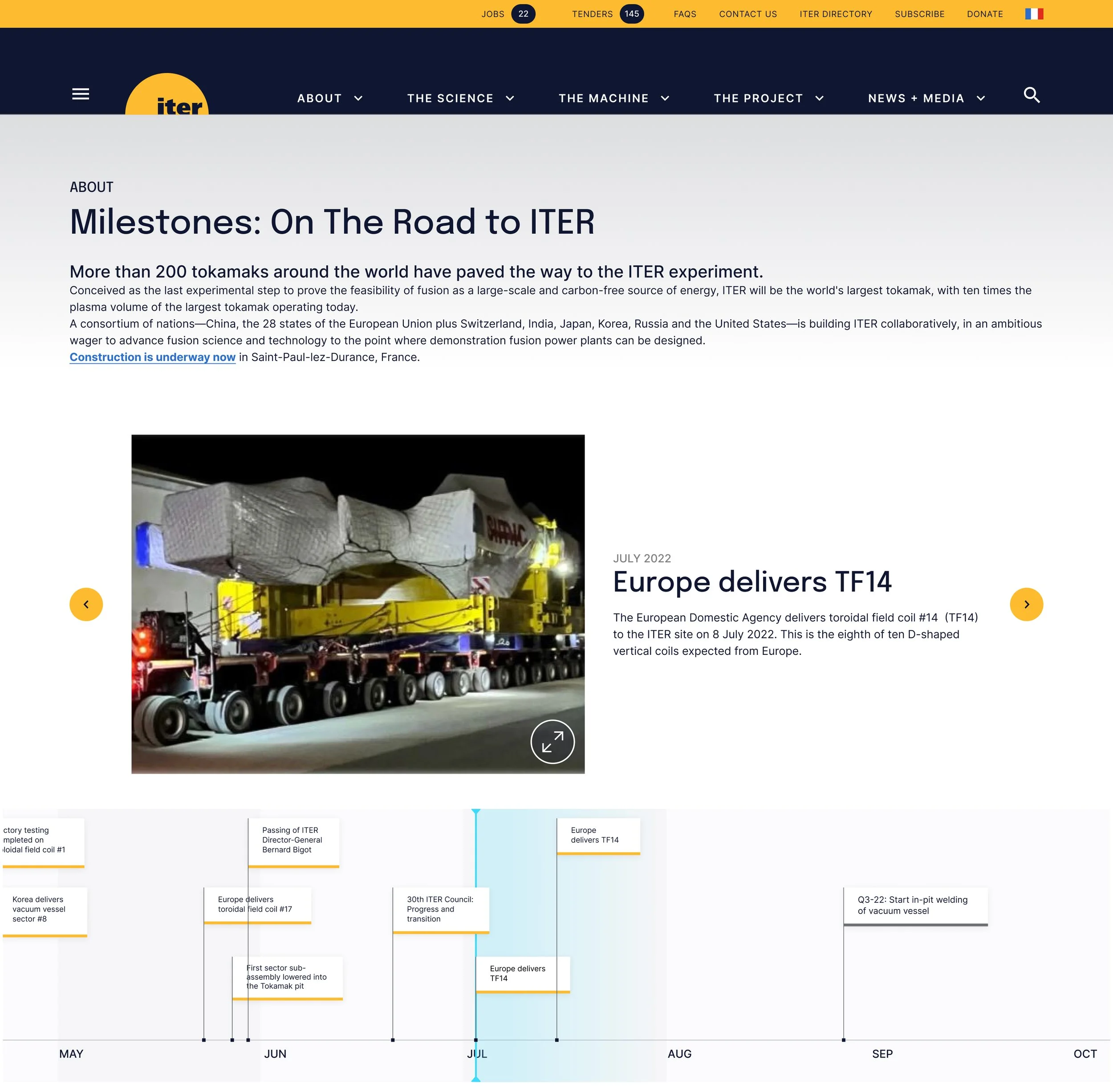 ITER is a large-scale, international scientific collaboration intended to prove the viability of fusion as an energy source. They are constructing a tokamak fusion device in southern France, with the goal of being online by 2035.