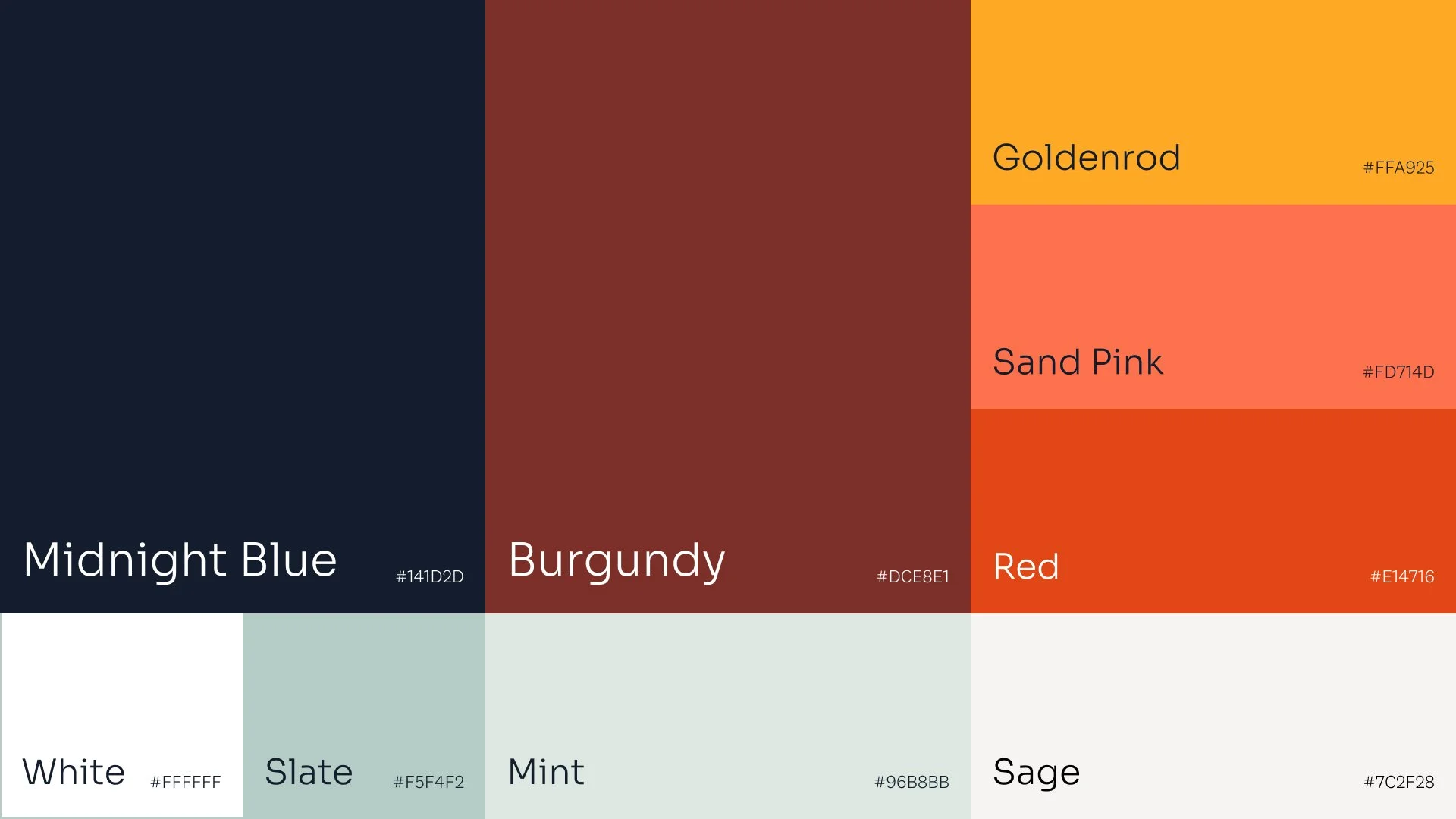 I pulled the goldenrod from the logo to be used as the brand’s call-to-action/highlight color, and kept the range of blues exclusive to the logo. The brand’s midnight blue is a darker shade of the darkest blue.