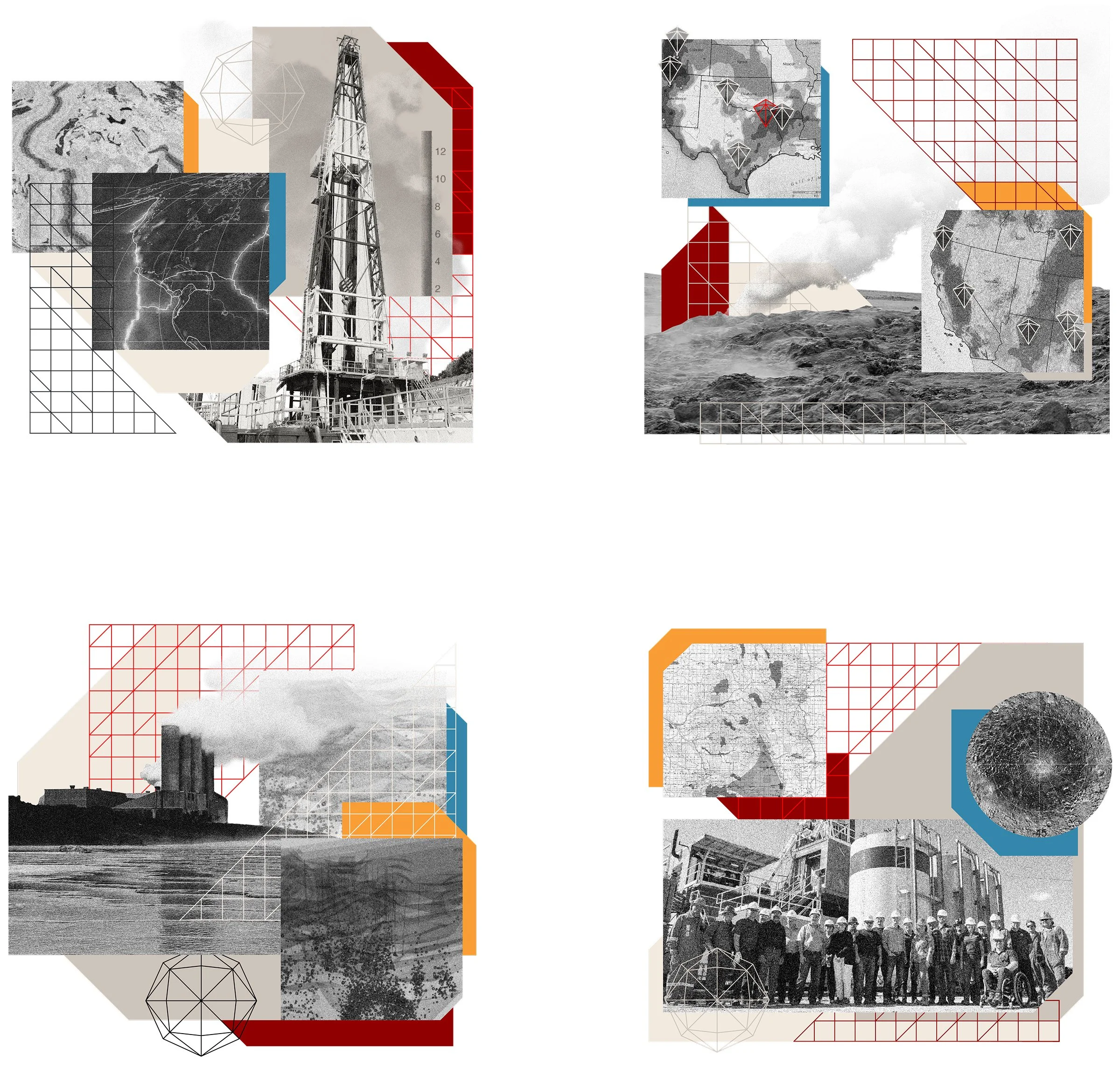 As a part of the web design process I created a digital collage for each page’s hero, often repeating elements (earth, earth’s core, textures, circles), but each having a unique layout and theme.