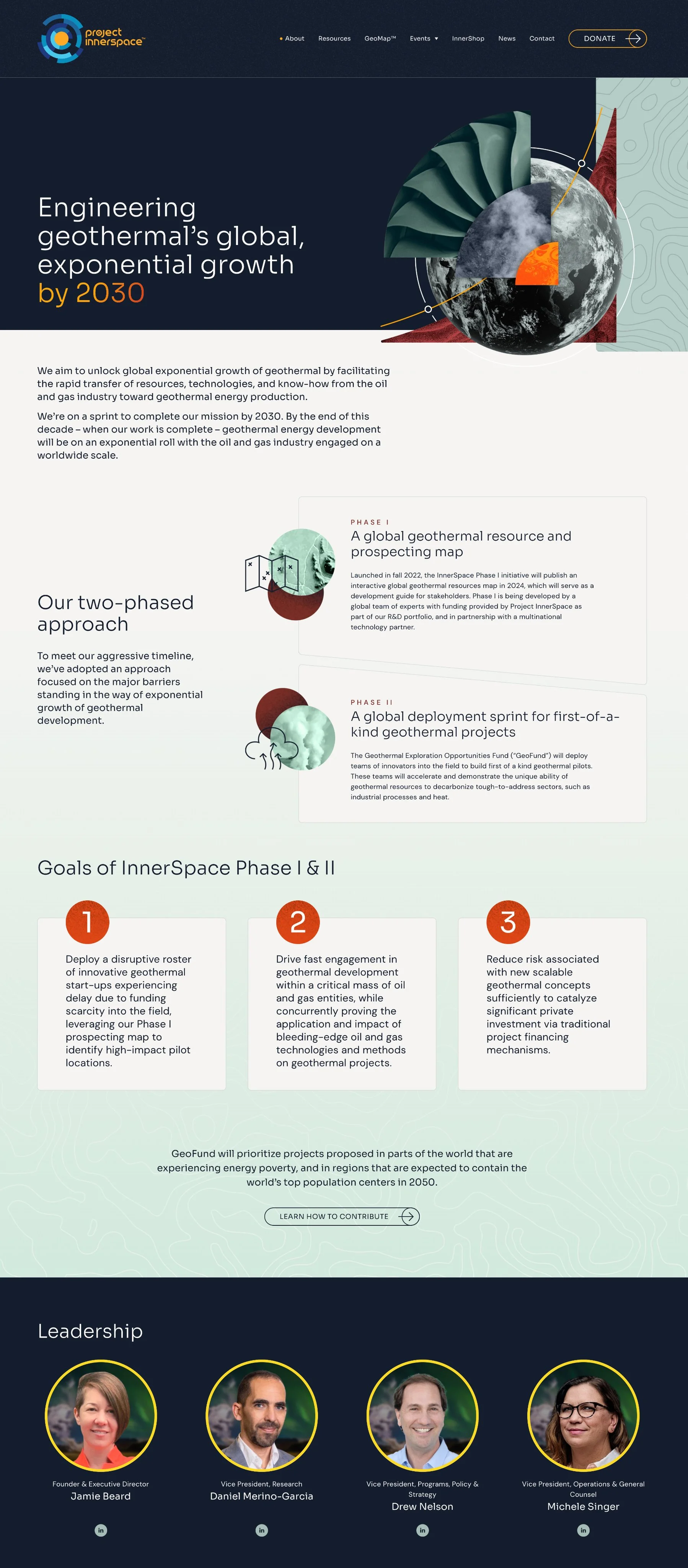 Project InnerSpace is the leading independent organization dedicated to rapid global development of geothermal energy. They bring together the financial resources of climate-conscious donors with the technical expertise and infrastructure of the oil and gas industry, creating a powerful alliance to pursue a sustainable geothermal energy future.