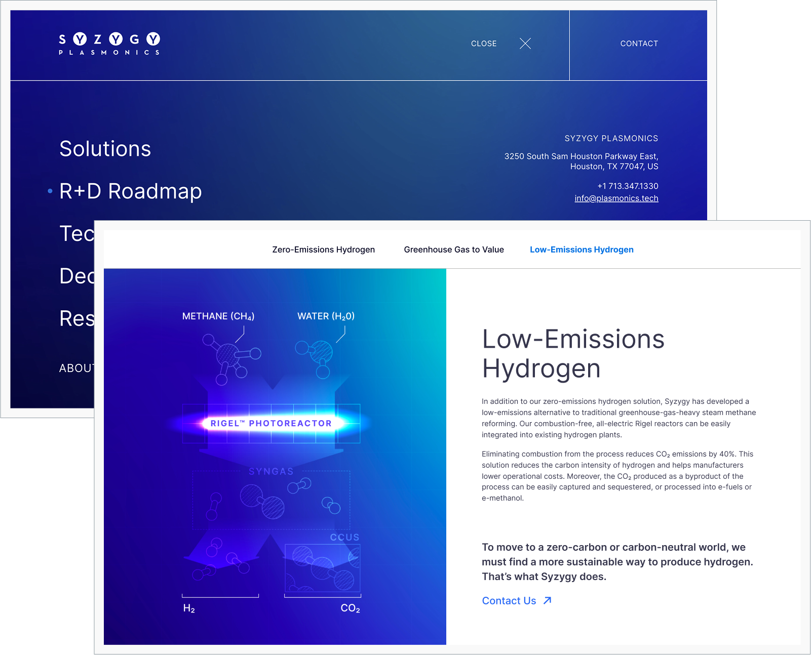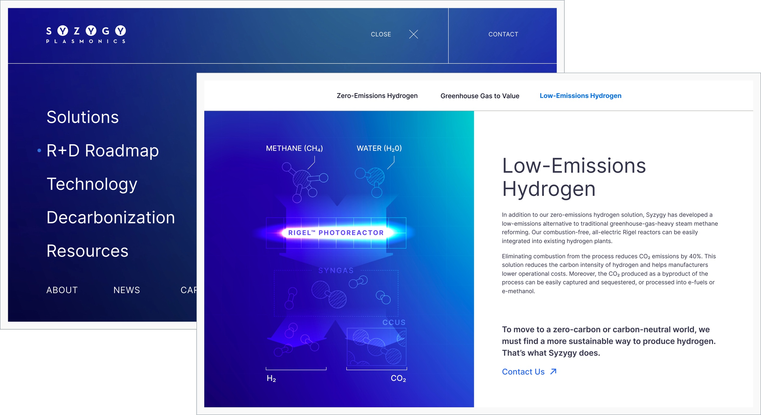 The hero illustration is an abstract representation of Syzygy’s Rigel™ device (abstracted substantially due to client concerns of giving away any of the patented technologies).