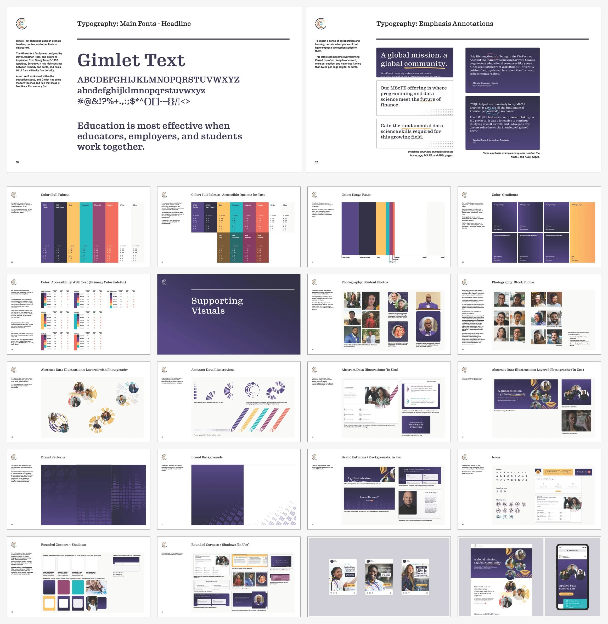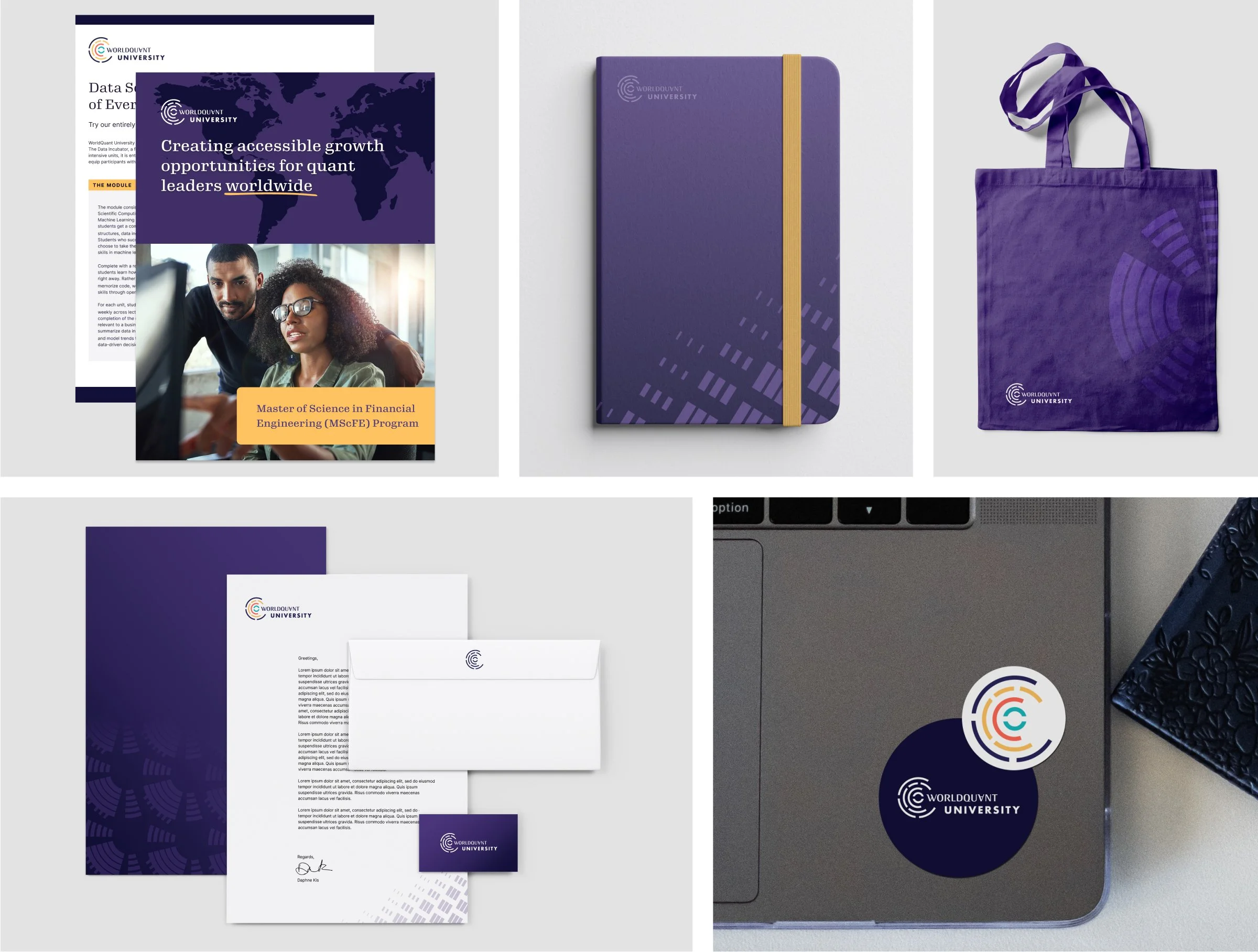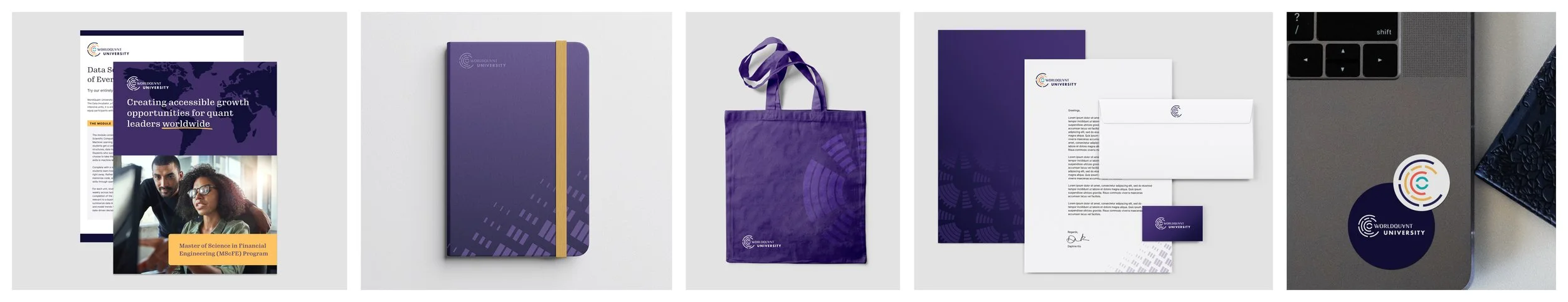 WorldQuant University had an existing mark with strong recognition in the space. Taking the logomark as inspiration, I expanded the abstracted data design language into patterns, spot illustrations, and animations.